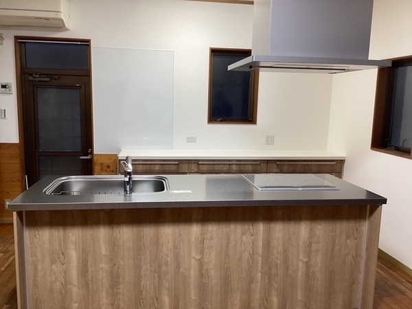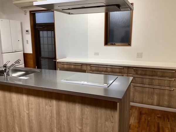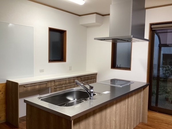 キッチンと収納棚の配置を考え、家事動線の良い使いやすく広い空間のリビングになりました。