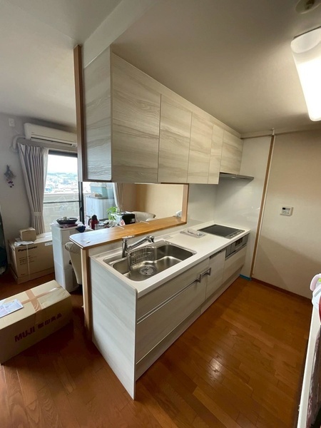既存キッチンの奥行750から650にして家事が楽になるようにご提案