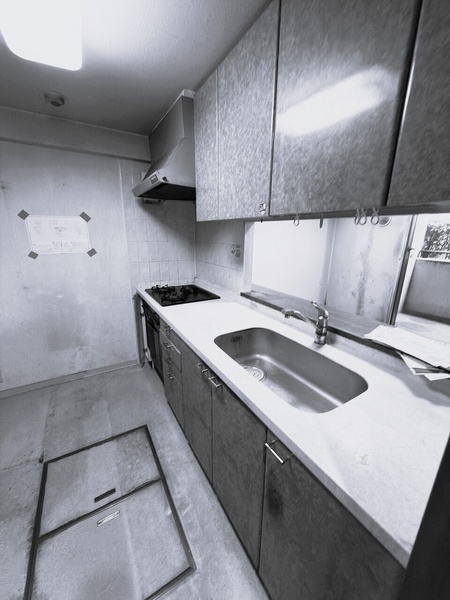 築年数の経ったキッチンで、吊戸棚でキッチンスペースが暗く、圧迫感がありました。床の点検口も生活感が出ており、お客様からは明るくて開放感のあるキッチンにしたいとのご要望をいただきました。