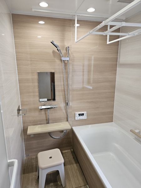 優レールハンガーをショールームでみて決めました。 子どもたちが完成したお風呂をみてカッコいいと言っていました。