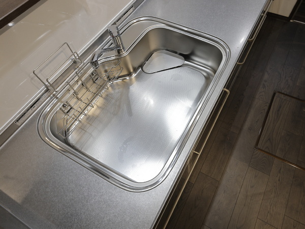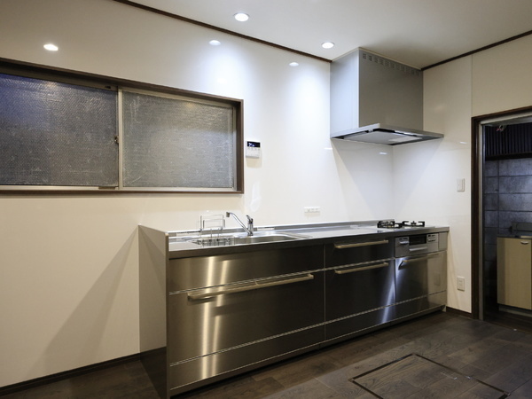ステンレスワークトップと、シルバー色の扉材により、スタイリッシュな印象のキッチン空間となりました。
