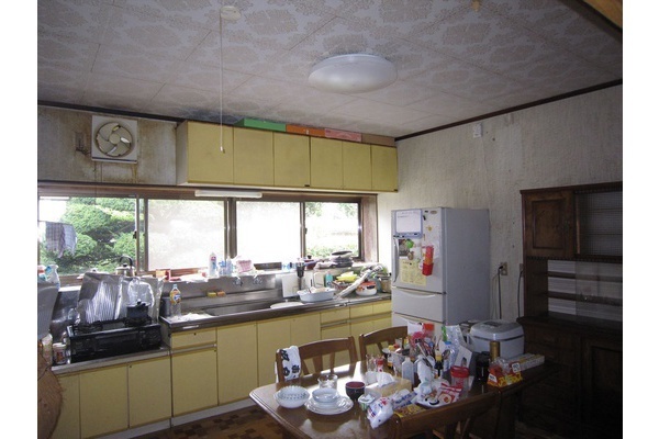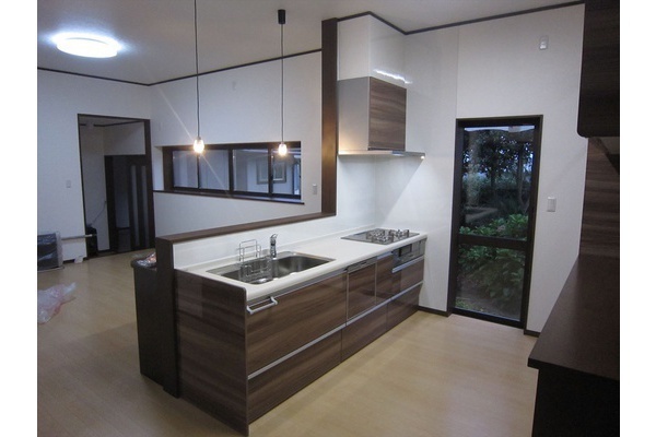 リビングとの一体感を持たせるために、吊戸棚をあえて後ろの収納スペースに設置しました。
