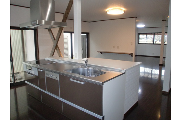 独立していたキッチンをリビングの中央に配置をし、団欒の中心的な存在になりました。 IHと食器洗乾燥器も付けてオール電化へ.