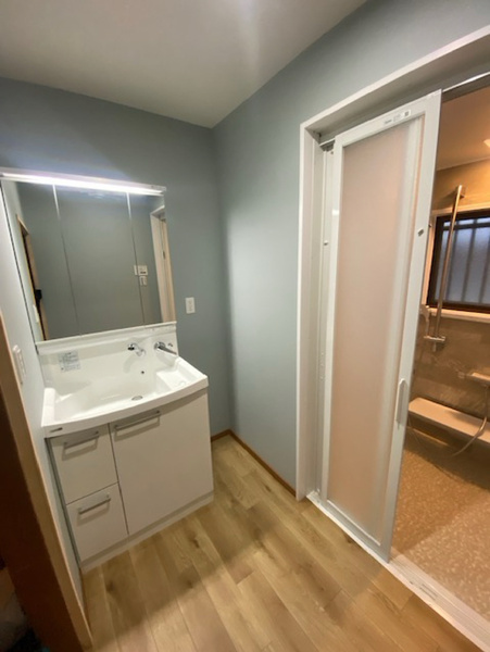 ご自宅での2人の介護を終えられた奥様。自分へのご褒美として脱衣とお風呂をリフォームを決意。 明るく、使い勝手の良いファンシオを提案しました。