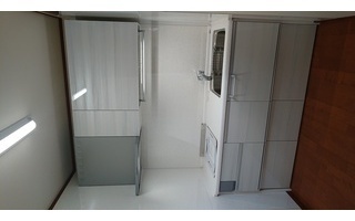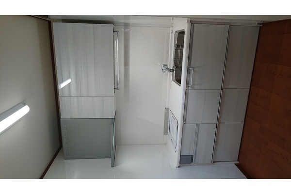配管が可能な納戸の一角にキッチンをプラン。 ハンドムーブで収納量もアップ。 壁から壁まで隙間なく納めました。