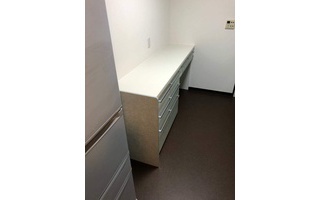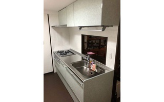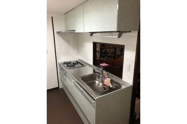 クリナップの「ラクエラI型」を設置致しました。 扉カラーは「カフェタイルアクア」になっており、キッチンの向かいには収納キャビネットを設置致しました。また、床とクロスも新しく張替え致しました。