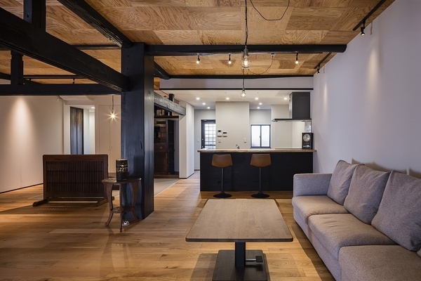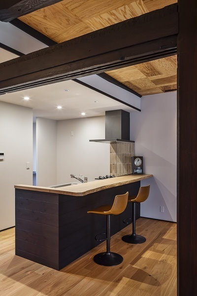 古民家カフェをイメージしたデザインです。 カウンター越しにくつろげるスペースはお客様のお気に入りの場所です。