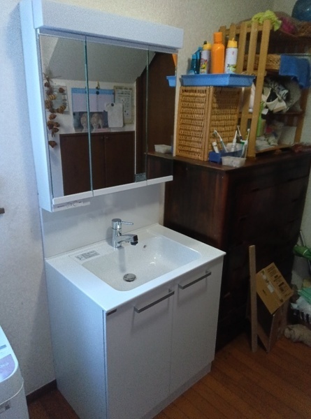 もともとは水栓の水漏れで修理をご希望でしたが、洗面化粧台自体が古くなっていたため、1式お取替えとなりました。使い勝手がシンプルだけど、しっかり収納できるものをご希望でした。