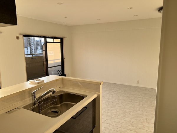 キッチンは吊戸棚無しにし、壁をる部してオープンにすることで広くなりました。