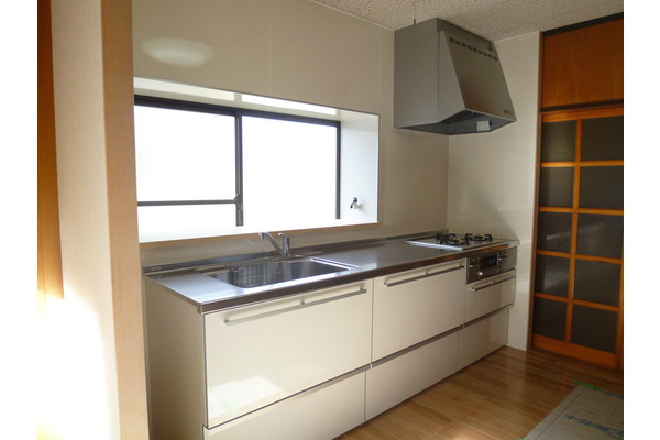 収納スペースが少なく、ゴチャゴチャとした台所を場所を移設し、収納たっぷりなシステムキッチンを選びました。