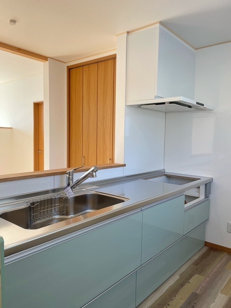 リビング側からは見えない自分だけのキッチンで好きな色を採用いただきました。