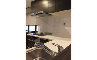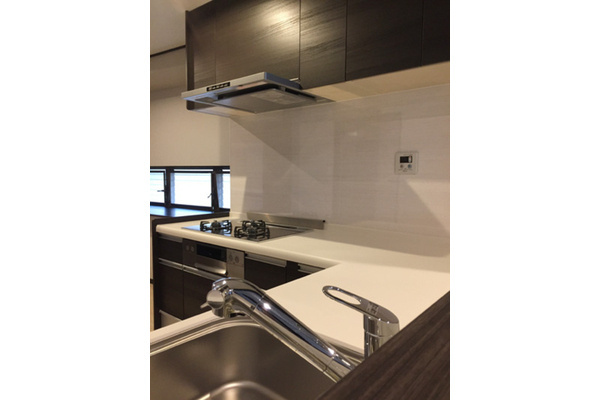 充実した設備のクリンレディ。ダーク木目のパネルで、高級感あるキッチンに。