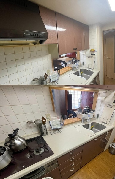 茶色のキッチンは落ち着きがあるのですが 両側にあることで少々圧迫感を感じていました。