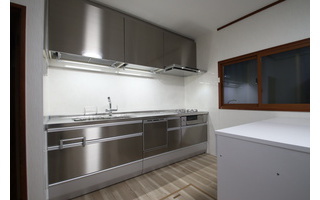 商品提案の中で、ステンレスのご紹介もしたところ厨房機器としてのステンレスの特徴にご納得いただき、扉までステンレスのクリンレディをお選びいただけました。内装工事と窓・勝手口の断熱化によって明るく暖かい台所もご提案しております。