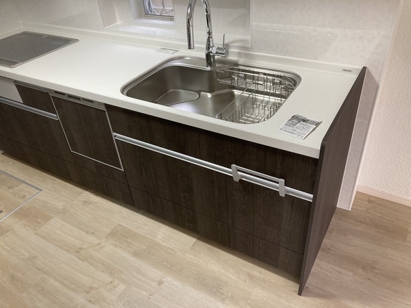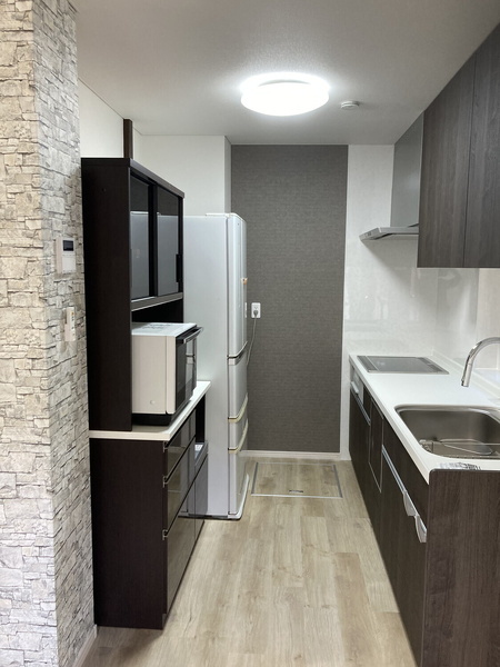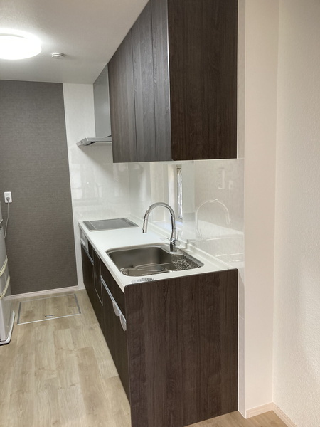床や壁を明るくして、キッチンでしめるデザインにしました。