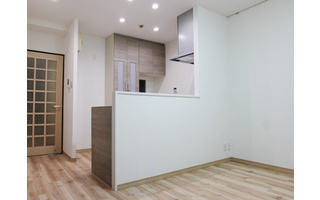 クローズキッチンの壁の一部を取り払い、セミオープンのキッチンにしました。 ダイニングとキッチンが繋がりが生まれ、開放感があります。 ホワイト&ナチュラルな内装で、明るい雰囲気になりました。