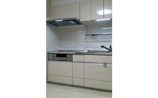 キッチンのリフォームをさせていただきました。クリームイエローの明るいキッチンに合わせて、壁クロス、床クッションフロアの貼り替えも行いました。