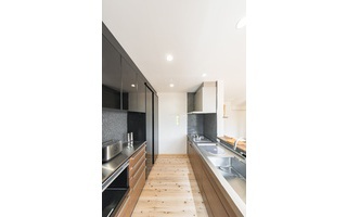 I型対面のレイアウトにすることで、インテリア性の高いキッチンを魅せる空間を提案した。