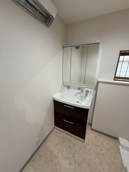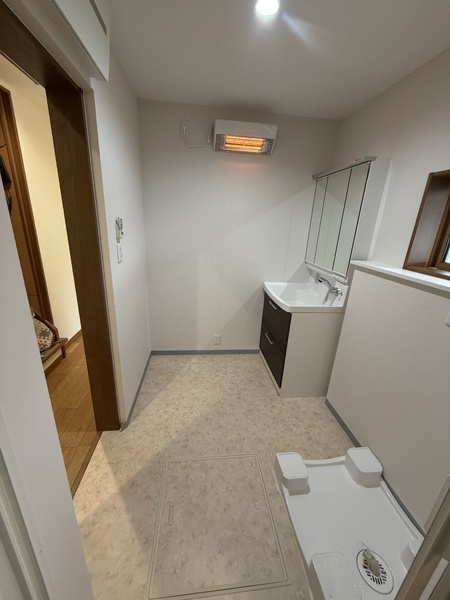 洗濯機も置けるようにして、洗面室の機能性をアップしましょう。暖房器具をつけて冬の寒さ対策も